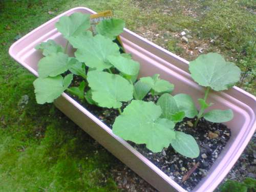 カボチャの苗が巨大化してきまして、 プランターでは手狭になってきました。本葉4,5枚と言う 目安も満たしているのかどうかわかりませんが、畑の方に定植です。 急なことなので、畑の準備が不足中ですが、適当なスペースに植え ちゃいました。ちょっと土が硬いのが気になりますが・・・・ 8カ所に植えてしまいました。急激な成長を望みます。