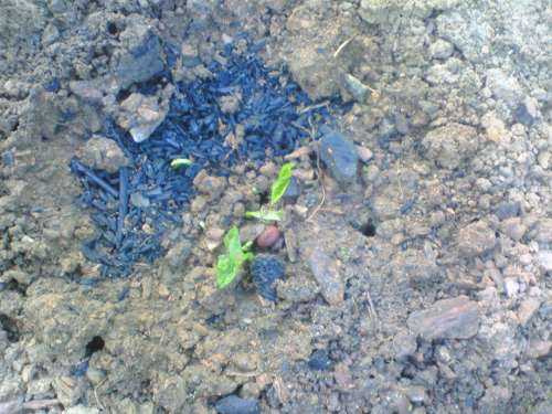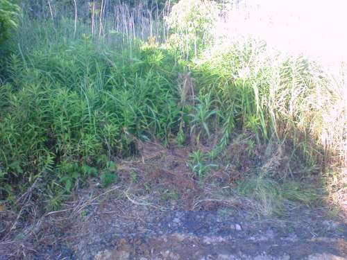 順調に水溜の水が減ってきております。梅雨入りお願いします。あと、キャベツ植えるためのスペース作り予定地です。やっぱり草ボーボーです。最後に、祖母の小豆が芽を出した模様です。