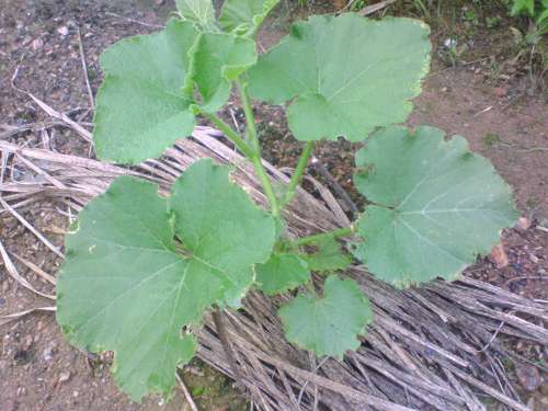 直植えのキャベツは順調に育っていますが、1カ所から2,3苗出てきていますので、そろそろ間引いて1つに絞らねばならないのですが、これが難しい。どの苗も手塩にかけて育てたわけで・・・カボチャは、予想通り、勢いよく蔓を伸ばしています。