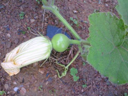 スイカが実をつけていたり、古株にシロアリが沸いていたり、カボチャの苗に実が付きました。