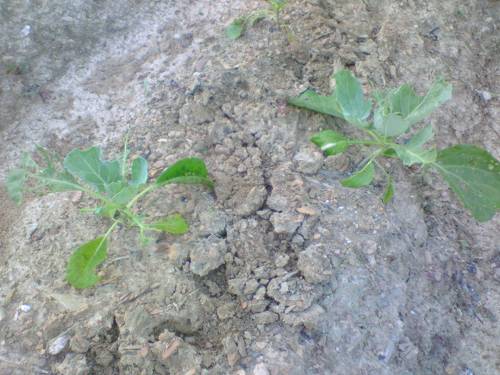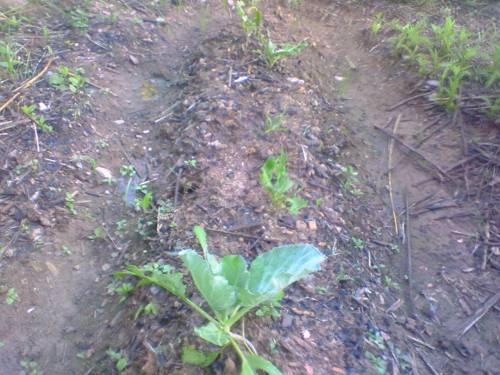 ほぼ毎早朝に、水やりに来ているのですが、最近水をやっても地面に染みこんでいかないんですよね。畝を作って1ヶ月以上経っているわけで、最近は雨も降ってませんので、ガチガチです。そうなってくると、畝から水がこぼれ落ちて畝畝間に貯まって、そこに染みこんでいきます。余り意味ない気がします。仕方ないので、要らない鎌でチョイと耕やかして、ふっくらさせてから水やってます。これが結構時間かかって、出勤前にはかなりうっとうしい作業になります。もっと良い環境で農業したいですね。