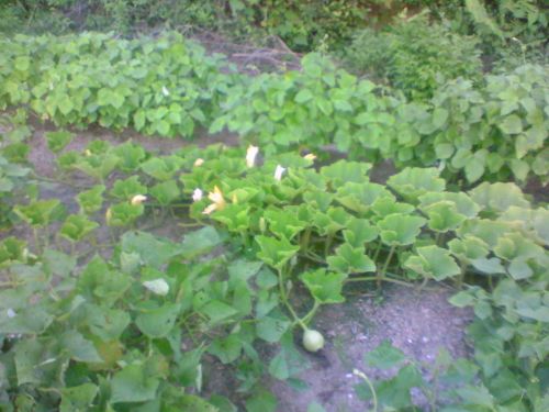 スイカ、キャベツ、カボチャと順調に育っています。ただ、カボチャの実第1号に異変が・・・・なんだか腐ってきた感じが・・・・どうなることやら。