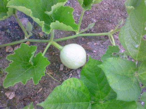 なんだか知らないけど、カボチャの実が白っぽくなっていきます。他の実を見ても白っぽい。そう言えば、カボチャの種を買うときに変わった種類の物を選んだ気がする。カボチャの馬車みたいな奴じゃなかったかな。順調に育ってるんでしょう。