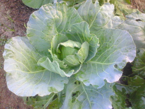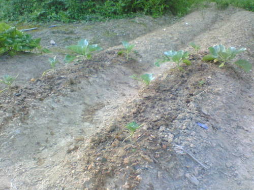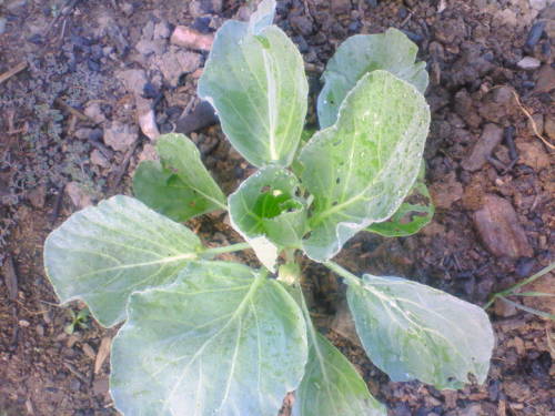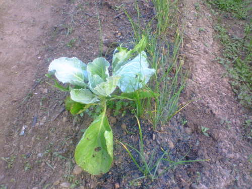 白っぽかったカボチャがとうとう緑色に変わってきました。大きさも柄杓の頭くらいになってます。本領発揮ですね。キャベツも何とか綺麗に育っていたのですが、新芽の中に青虫発見。なんだか嫌な予感がします。投薬効果が切れてきた模様。青虫との戦い勃発ですね。