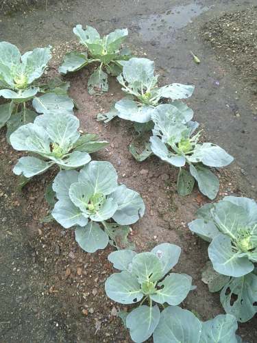 仕事の関係で全く畑に行けていなかったのでチョイと心配していたのですが、やられてましたね。青虫の襲来です。と言うことで2,3日前に祖母が2回目の消毒をしてくれたみたいです。ネットとかで虫を排除するしかないですね。キャベツは、受粉とか必要ないからネットかけちゃえば良いんですよね。実際祖母はそれやってますし・・・・・