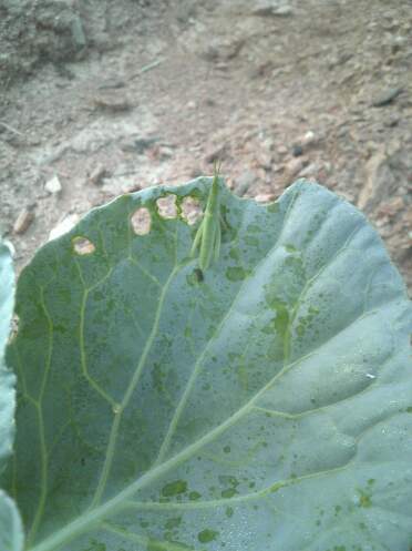 青虫と違ってバッタは端っこから食べて行くみたいです。明らかに葉の無くなり方が違います。