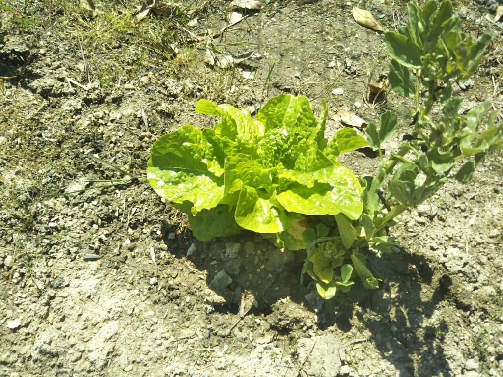で、隣に種が飛んだのでしょうか。以前植えていたチマサンチュの葉が出てきました。折角なので