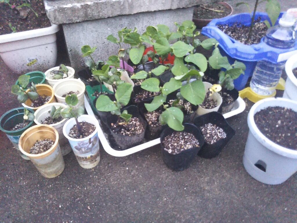 枝豆の苗が見事に成長中。待ってられない、祖母はそろそろ苗を植えるところを探して