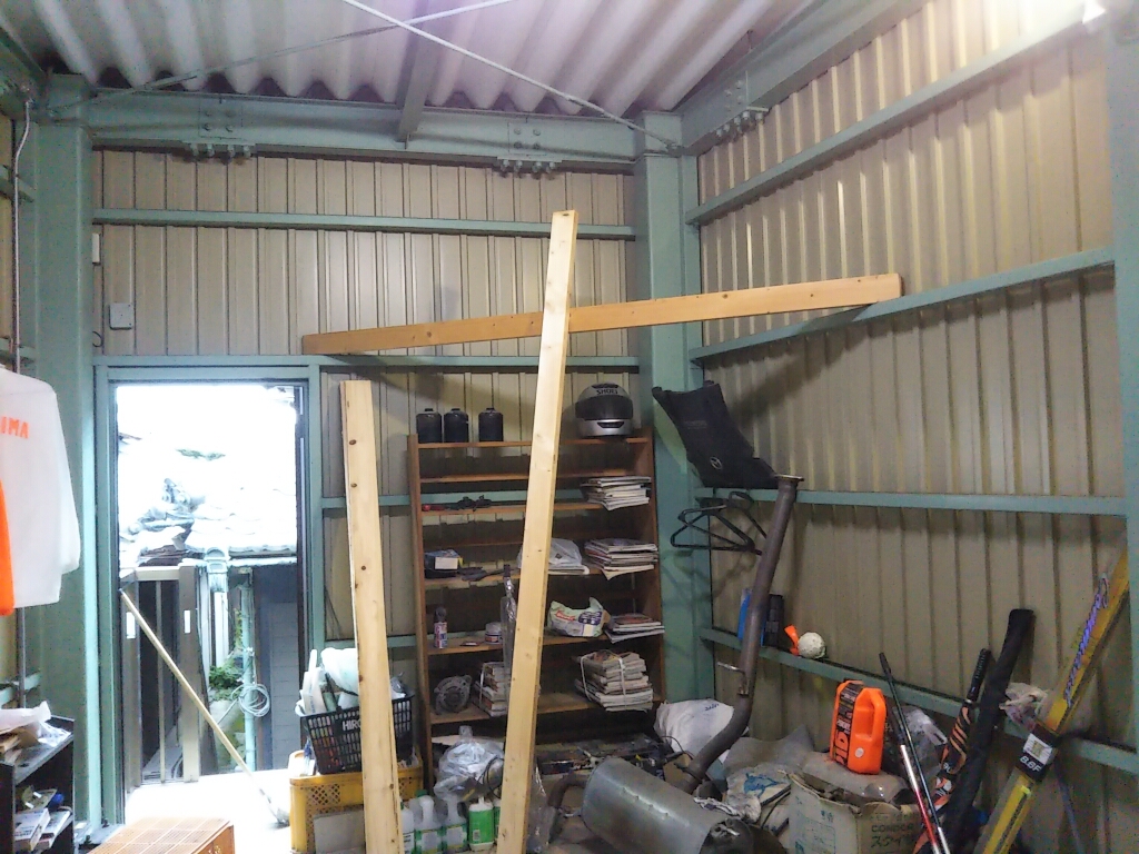 車庫の中2階物置場の設置 その1