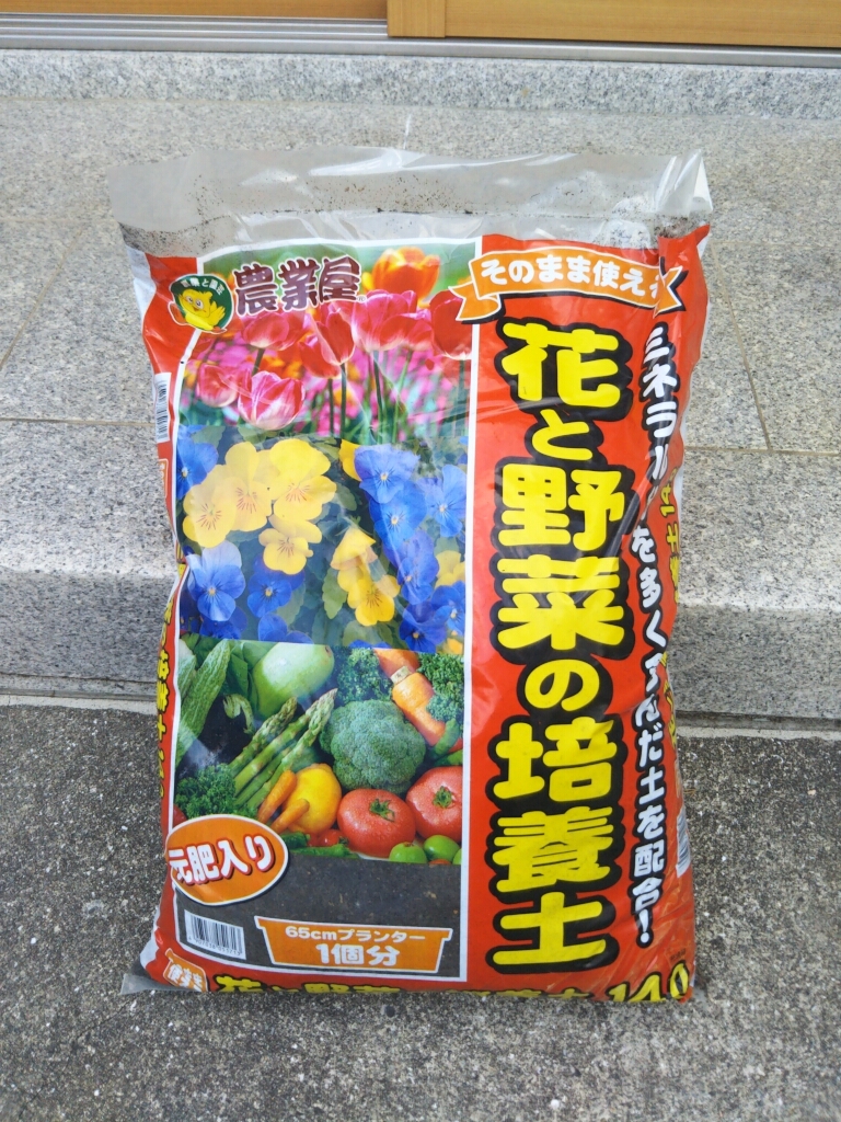 息子が、庭先でラディッシュを作るというので土を購入してきた。プランターは、