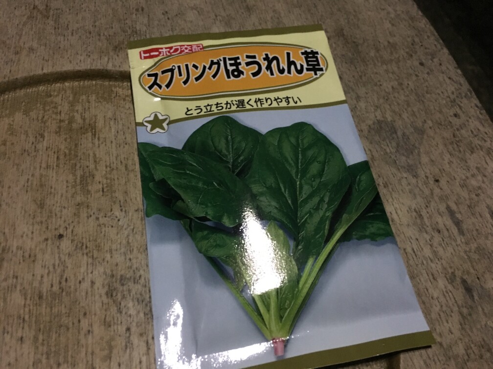 最後は、葉っぱ物が恋しくてほうれん草の種まきをすることにしました。今の季節にピッタリのスプリングほうれん草です。早速開けてみると、中からは茶色に染まった種が出てまいりました。こぼしてしまっても目立っていいですね。