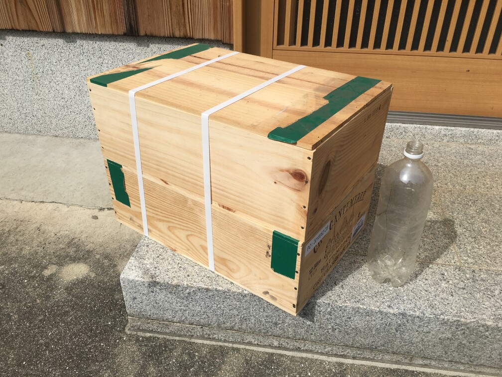 ネットにて、ワインボックスなるものを購入してみました。その名の通り、ワインを出荷する際に詰める箱、木箱です。りんごの箱(イメージしやすい?)のワインバージョンです。