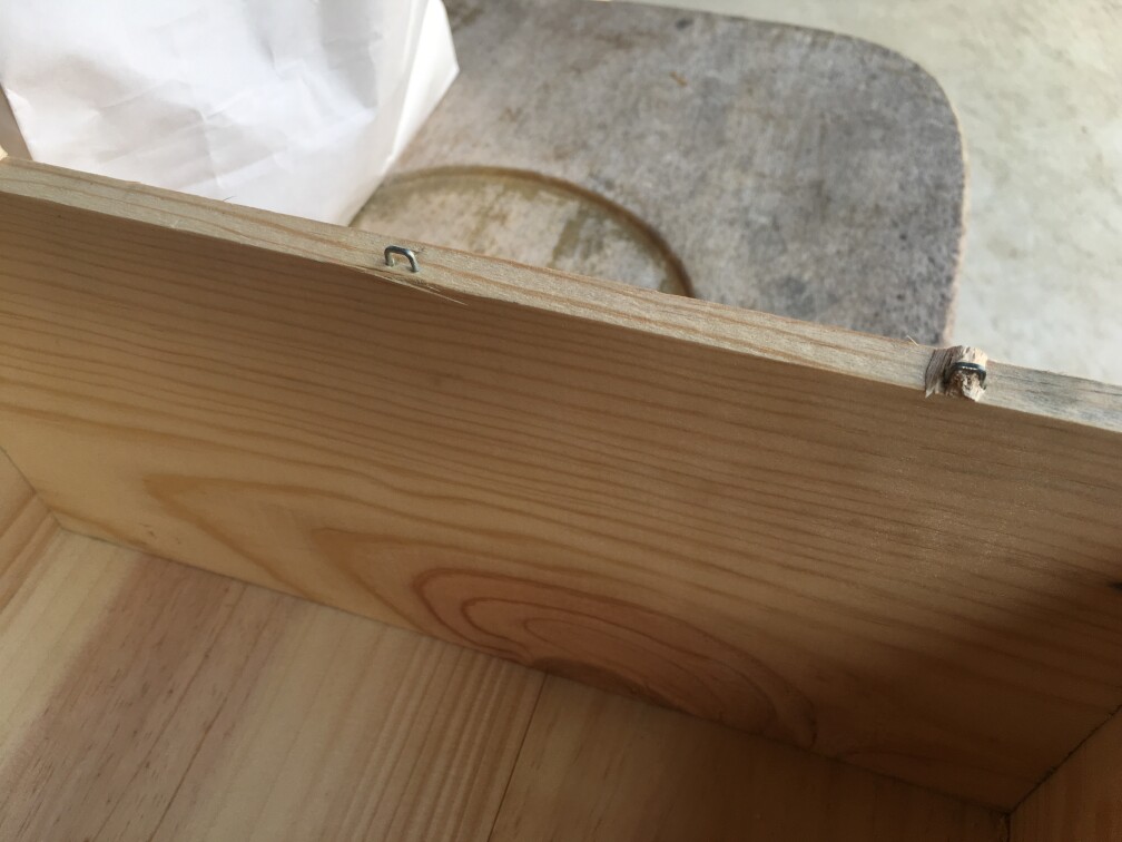 なので、中にはワインボトルの仕切りが入ってるのもあったりなかったり、てんでまちまちです。片側の箱の縁には、フックを掛けるような金具が刺さってたり・・・・全く処理されてませんので。