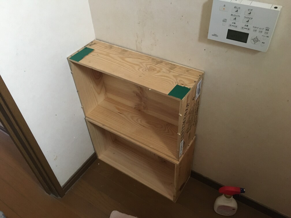 で、今回は12本入りの箱2セットと6本入りの箱1セットをネット購入し、こいつをただ並べるだけでおしゃれな棚になっちゃうようなので、実践してみました。DIYですが、何もしてません。