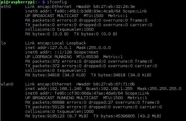 pi@raspberrypi:~$ ifconfig