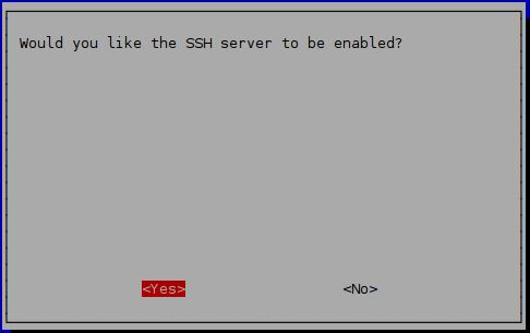SSHサーバーを利用可能にしたいか?って聞いてくるので。迷わず、Yes。