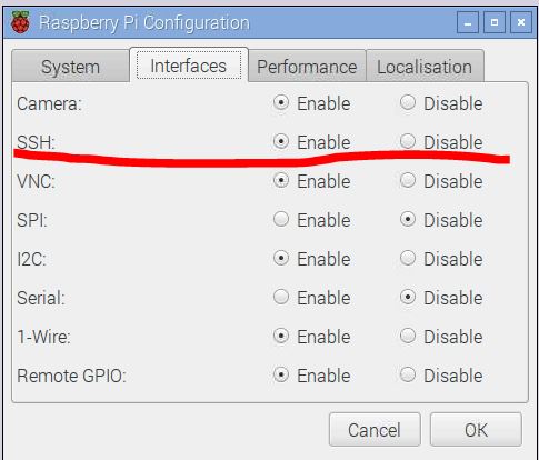 menu→Preferences→Rasberry Pi Configuration