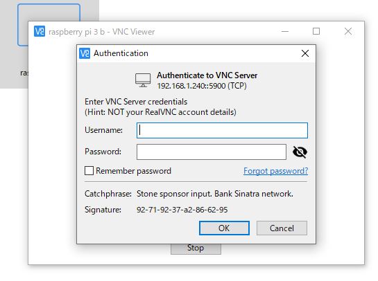 次に、先ほど作った接続設定をダブルクリックして接続を試みますとUsername、Passwordを聞いてきますので、入力します。piとraspberryですね。Remember passwordにチェックを入れるとパスワード覚えておいてくれます。